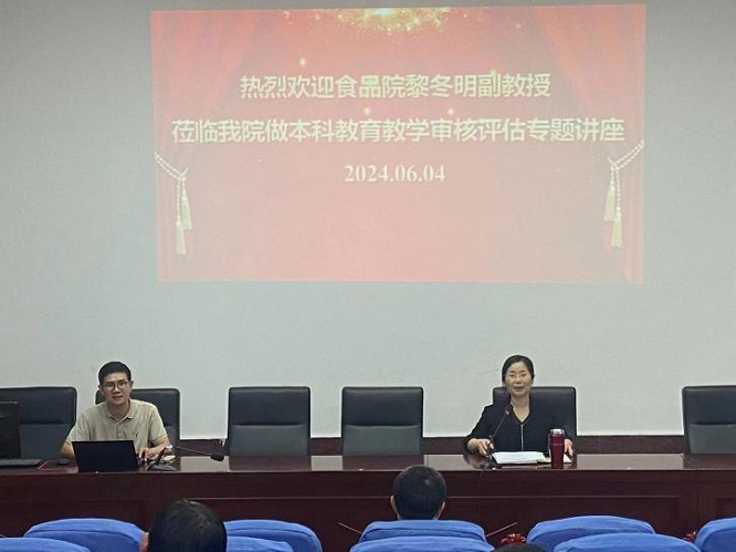 2024年6月4日下午,best365官网在阶梯报告厅召开了本科教育教学审核评估工作推进会,邀请食品院黎冬明副教授作本科教育教学审核评估专题讲座。学院全体教职员工参加了会议,会议由副院长龚霞主持。
