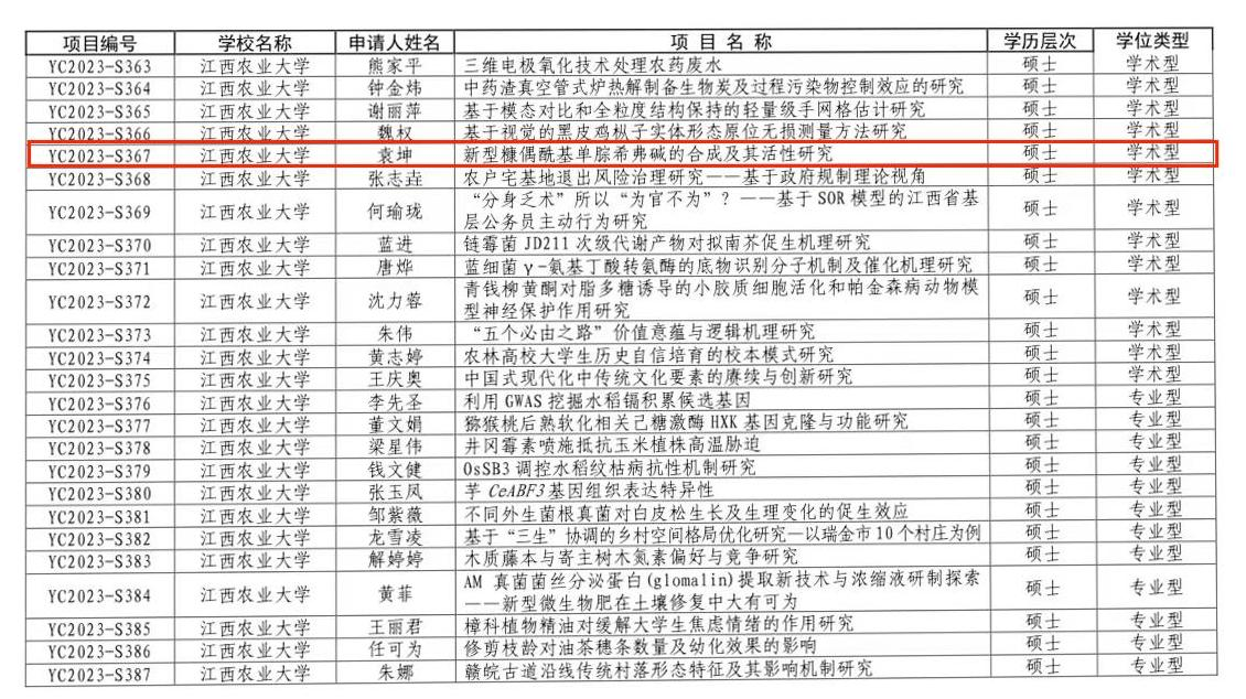 根据《关于开展江西省2023年度研究生创新专项资金项目工作的通知》(赣教研字〔2023〕12 号),best365官网积极响应号召并有序组织开展了项目申报以及初评工作。经研究生院进一步评审公示,江西省教育厅核准,best365官网成功获批1项2023年度研究生创新专项资金项目立项。