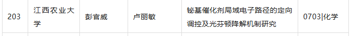 近日,江西省人民政府学位委员会办公室发布了《关于2025年江西省优秀博士硕士学位论文评审结果的公示》,best365官网2021级化学专业硕士研究生彭官威(导师:卢丽敏)的学位论文《铋基催化剂局域电子路径的定向调控及光芬顿降解机制研究》获评2025年江西省优秀硕士学位论文。