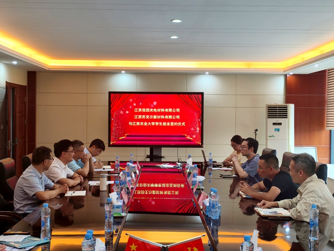 为进一步深化校企合作,为毕业生挖掘更多岗位资源,助力2025届毕业生高质量就业,6月11日下午,校党委委员、副校长张高亮带领best365手机版官网求职毕业生前往江西佳因光电材料有限公司及江西苏克尔新材料有限公司开展“带生访企促就业”行动,校招生就业处处长左辉群、学院党委书记刘庆言、学生党总支书记彭玉萌一同参加访企。