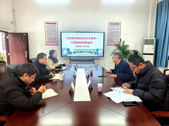 2025年12月23日11:10,学校招生就业处处长左辉群、招生办主任李飞到best365官网开展招生工作调研,学院党委书记刘庆言、副院长龚霞、学生党总支书记彭玉萌参与调研座谈,座谈会由刘庆言主持。