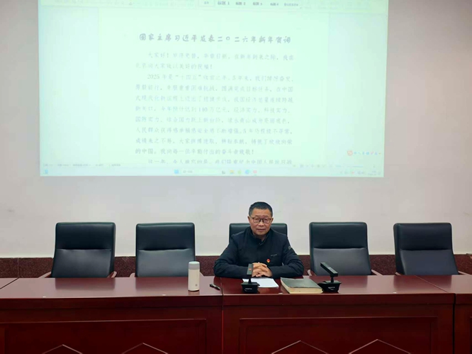 学习会上,院党委书记刘庆言组织全体教职工一起学习了习近平总书记发表的2026年新年贺词及学校2026年新年贺词,认真回顾总结了国家及学校2025年度取得的各项发展成就。
