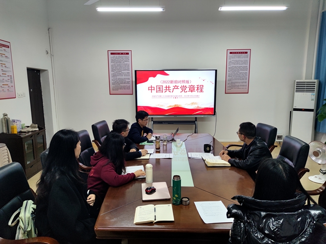 会议伊始学生党总支书记彭玉萌带领大家先后学习了《中国共产党纪律处分条例》(修订)、《党史学习教育工作条例》、《中国共产党巡视工作条例》(修订)、《中国共产党章程》及《中国共产党普通高等学校基层组织工作条例》。