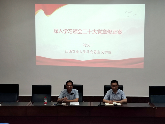 刘汉一以“深入学习领会二十大党章修正案”为题,从“中国共产党章程概述、党章建设的历史进程、二十大党章修正案的主要内容”三个方面对《中国共产党章程》的形成、发展及完善这一历史进程进行了系统性论述,并结合自身多年学习与工作的感受与体会,生动阐述了在一代代共产党人的共同努力下,党章实现“从无至有,从有至善”的重大历史成就。
