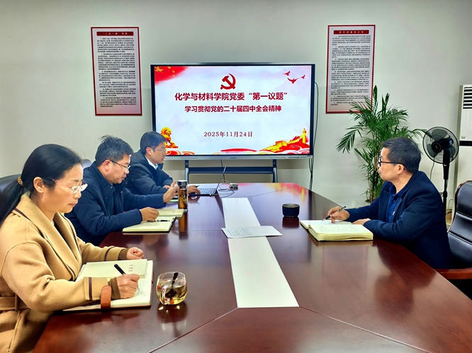 2025年11月24日14:30,学院召开党委会,继续深入学习党的二十届四中全会精神。党委领导班子成员参会,九三学社社员、副院长龚霞,学生党总支书记彭玉萌列席会议,会议由学院党委书记刘庆言主持。