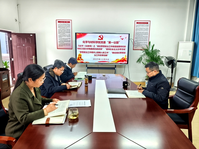 会议强调,化材院必须要牢牢把握社会主义办学方向,坚持以马克思主义为指导,坚持党对高校的领导,增强道路自信、理论自信、制度自信、文化自信,努力培养中国特色社会主义合格建设者和可靠接班人。