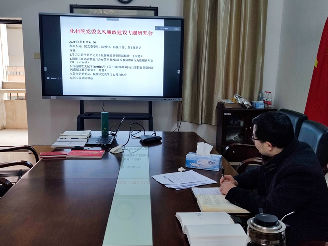首先,院长王宗德领学了自十八大以来习近平总书记关于反腐败的部分重要讲话精神;尔后,副院长卢丽敏通报了《江西省教育厅公布第四批7起违反教师职业行为十项准则典型案例》内容;党委副书记叶健传达了赣农大纪字[2022]15号《关于做好2023年元旦寒假春节期间正风肃纪工作的通知》文件精神。