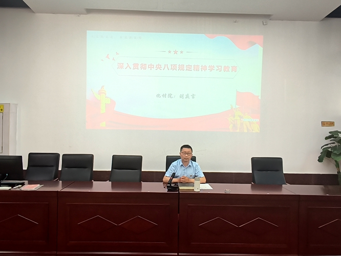 刘庆言从什么是中央八项规定、什么是中央八项规定精神、违反中央八项规定精神的主要表现、相关党纪条规、八项规定改变中国、深入贯彻中央八项规定精神的成功经验六个方面对中央八项规定及其精神的含义、重要性及取得的伟大成就与经验进行了深入细致的阐述,并就化材院全体党员干部职工做好中央八项规定精神的贯彻落实提出要求。