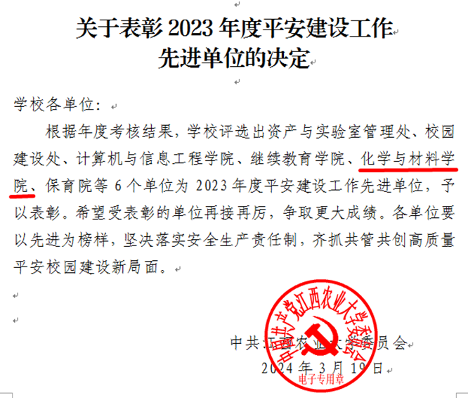 日前,学校发布《关于表彰2023年度平安建设工作先进单位的决定》,best365官网获评best365手机版官网2023年度平安建设工作先进单位。
