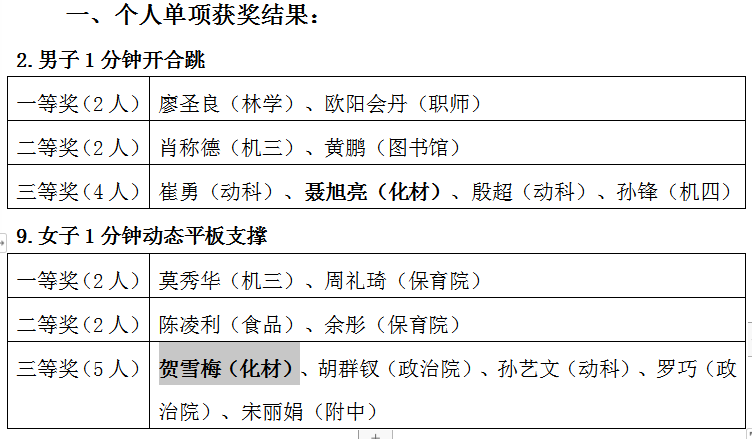 化学支部书记贺雪梅和党员聂旭亮参加了云端运动会并获得佳绩。贺雪梅荣获一分钟动态平板支撑三等奖,聂旭亮荣获一分钟开合跳三等奖。