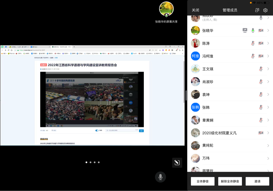 2022年11月29日,为认真贯彻落实习近平总书记关于学风建设和科研诚信建设工作以及研究生教育工作指示精神,引导广大师生和科技工作者弘扬科学家精神,best365官网研究生支部和研究生分会共同组织研究生在线上观看“2022年江西省科学道德和学风建设宣讲教育报告会”。此次活动由学术部2022级研究生熊欣婷主持,研究生支部张晓华老师及十余名研究生认真观看并进行探讨。
