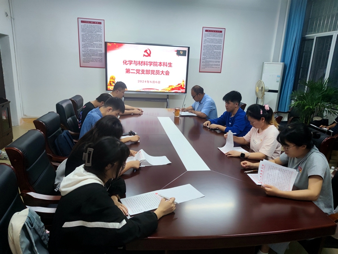 2024年6月6日18:30,本科生第二党支部召开党员大会,开展党纪学习教育及预备党员转正工作。会议由支部书记廖超主持。