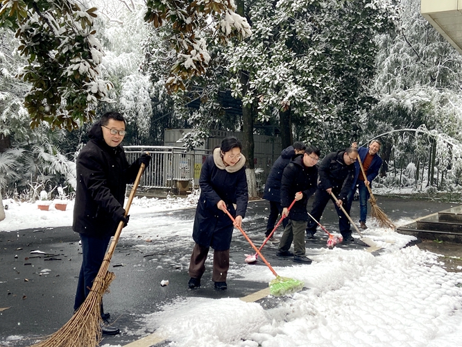 为全力保障师生平稳安全出行,2024年1月22日上午,学院组织党政领导、行政坐班人员及党员志愿者在学院办公楼、实验楼周边开展清扫积雪活动。本科生第二党支部书记廖超参与本次活动。
