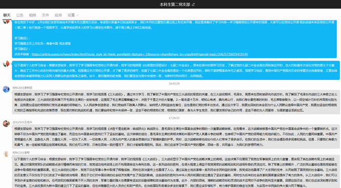 2024年1月22日至23日,本科生第二党支部通过线上形式开展1月份主题党日,组织支部党员认真学习党校公开课(学习强国青春中国专栏)内容。