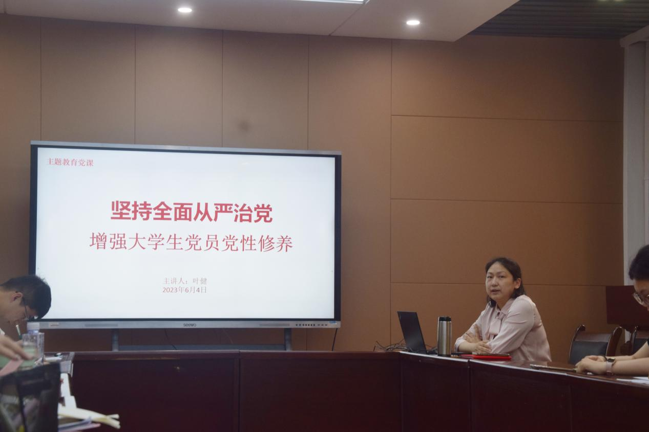 为推进主题教育走深走实,增强大学生党员的党性修养,2023年6月5日上午9点,学院党委副书记叶健为全体学生党员讲授题为《坚持全面从严治党,增强大学生党员党性修养》的专题党课,全体辅导员及学生党员聆听党课。