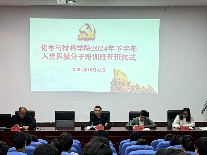2024年10月31日18:30,学院党委分党校2024年下半年入党积极分子培训班开班仪式在学院阶梯报告厅隆重举行。学院党委书记、分党校校长刘庆言,学生党总支书记彭玉萌,本科生第一、第二党支部书记及入党积极分子培训班学员共30余人参加本次开班仪式,仪式由彭玉萌主持。
