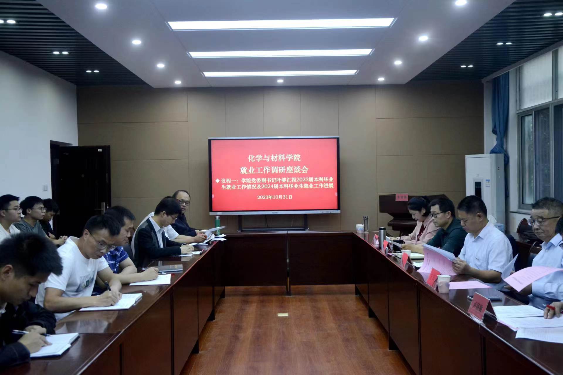 2023年10月31日下午,校党委副书记蔡海生在招生就业处处长左辉群陪同下到学院开展就业工作调研。学院党政领导、2024届毕业班班主任、全体辅导员及毕业生代表共20余人参与本次调研座谈会。
