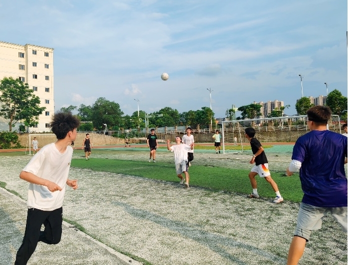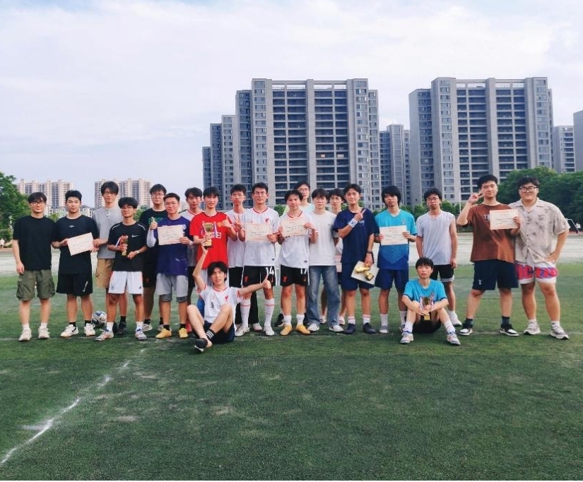 绿茵场上,球员们斗志昂扬,挥洒汗水。他们以灵动的盘带突破防线,用精准的长传策动攻势,每一次默契配合都彰显团队的智慧,每一脚劲射都点燃全场的热情。场边助威的同学们心潮澎湃,此起彼伏的呐喊声、擂鼓声将比赛氛围推向高潮。经过紧张激烈的小组赛和淘汰赛,最终荣耀榜单揭晓: