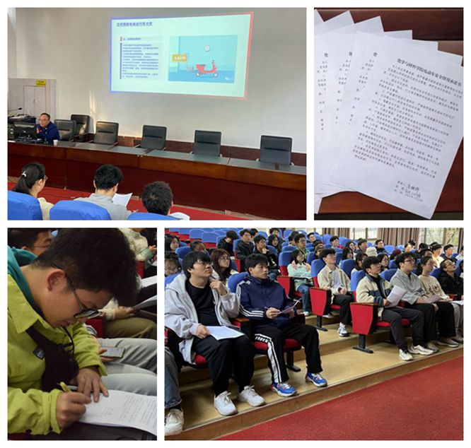 召开主题班会,安全教育全覆盖。为让安全教育覆盖全体学生,best365官网组织各班级重点围绕电动车安全召开校园安全主题班会,在新生第一堂晚自习上,best365官网组织辅导员下班级开展电动车安全教育宣讲,让全体学生充分认识到电动车风险大于便利,绿色出行也是平安出行。