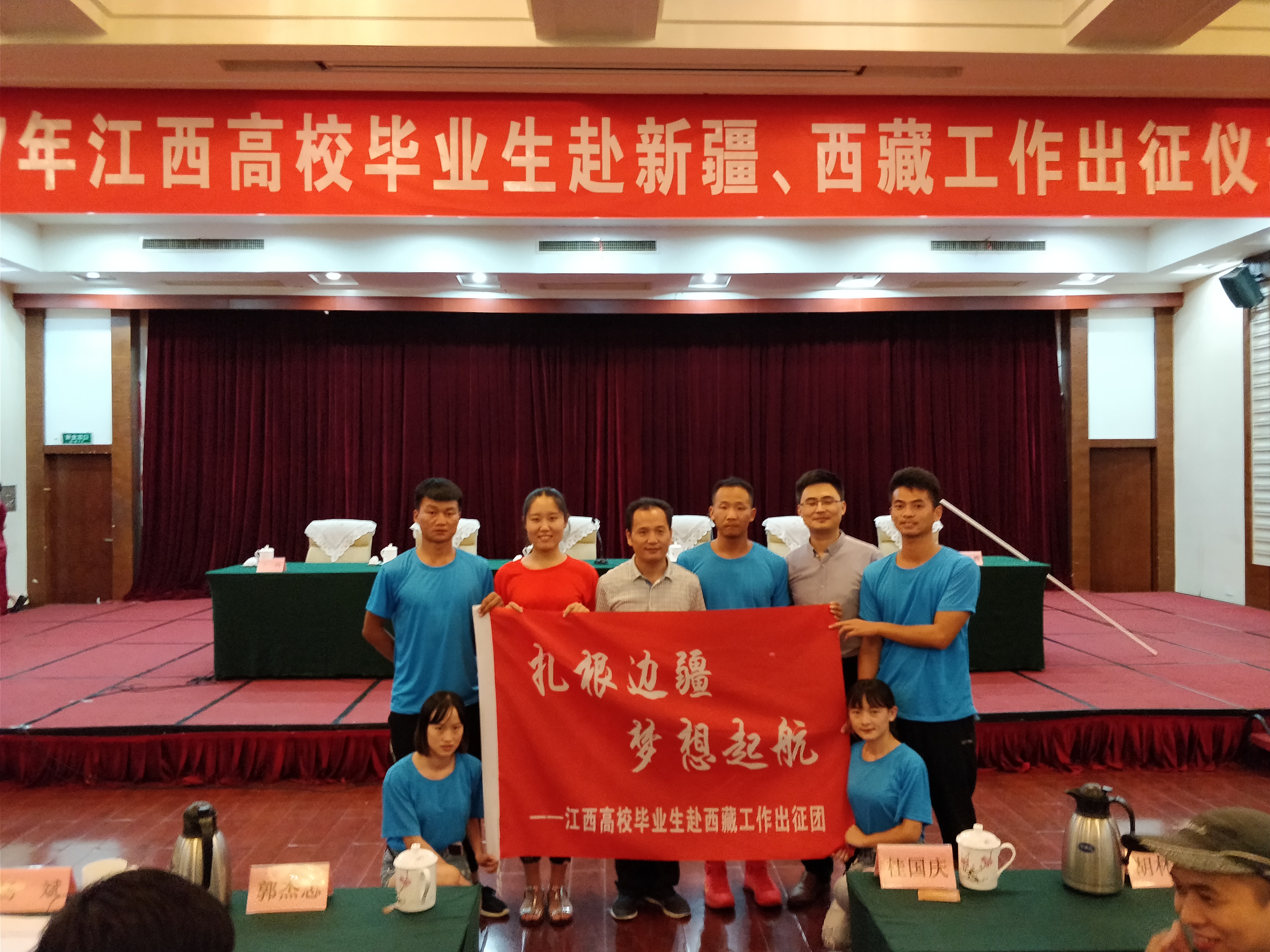 2017年7月30日,best365手机版官网举行高校毕业生赴新疆、西藏工作出征仪式,后面左起第四位为郑凯元