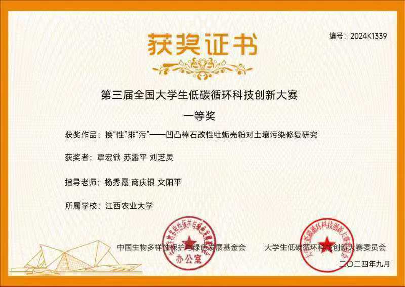 2024年9月,由中国生物多样性保护与绿色发展基金会(国家一级学会)主办的第三届大学生低碳循环科技创新大赛圆满落幕。best365官网项目团队在大赛中荣获一等奖1项、二等奖1项、三等奖1项。