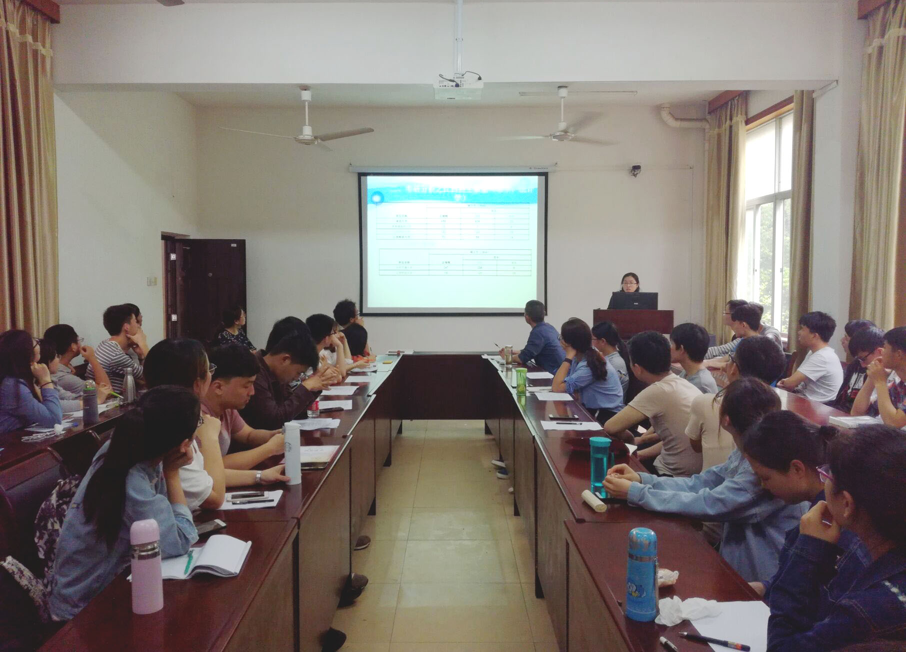 数学系副主任付莲莲老师还为信计1501班做了考研专题报告。报告围绕自我定位、历届毕业生考研情况、考取与考好的把握、院校和专业的选择等进行专业引导。