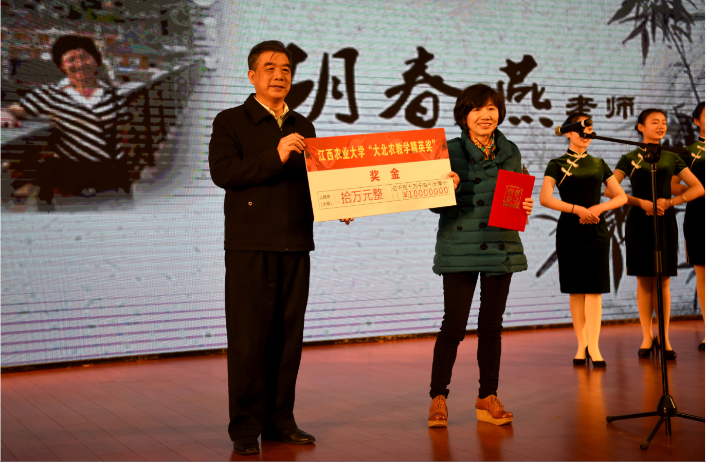 颁奖大会在音乐声中正式开始,校长赵小敏主持,校党委书记黄路生讲话,省教育厅领导、大北农集团总经理分别致辞。接着,揭晓best365手机版官网首届“大北农教学精英奖”得主,best365官网化学系老师胡春燕名列其中。在一片掌声之中,胡春燕老师神采奕奕走向主席台,接过省教育厅领导颁发的证书和奖金。胡老师随后发表获奖感言,她说,荣获得best365手机版官网首届“大北农教学精英奖”,感到无比欣慰,这是学校、大北农集团以及老师和学生对他在教学中的付出和表现的一种认可和肯定,也是对所有一直奋战在一线教学岗位的老师们鞭策。她表示她不会满足于已有的成绩和荣誉,会一如既往做到“用心做教育,用爱为人师”,在三尺讲台上继续书写人生。