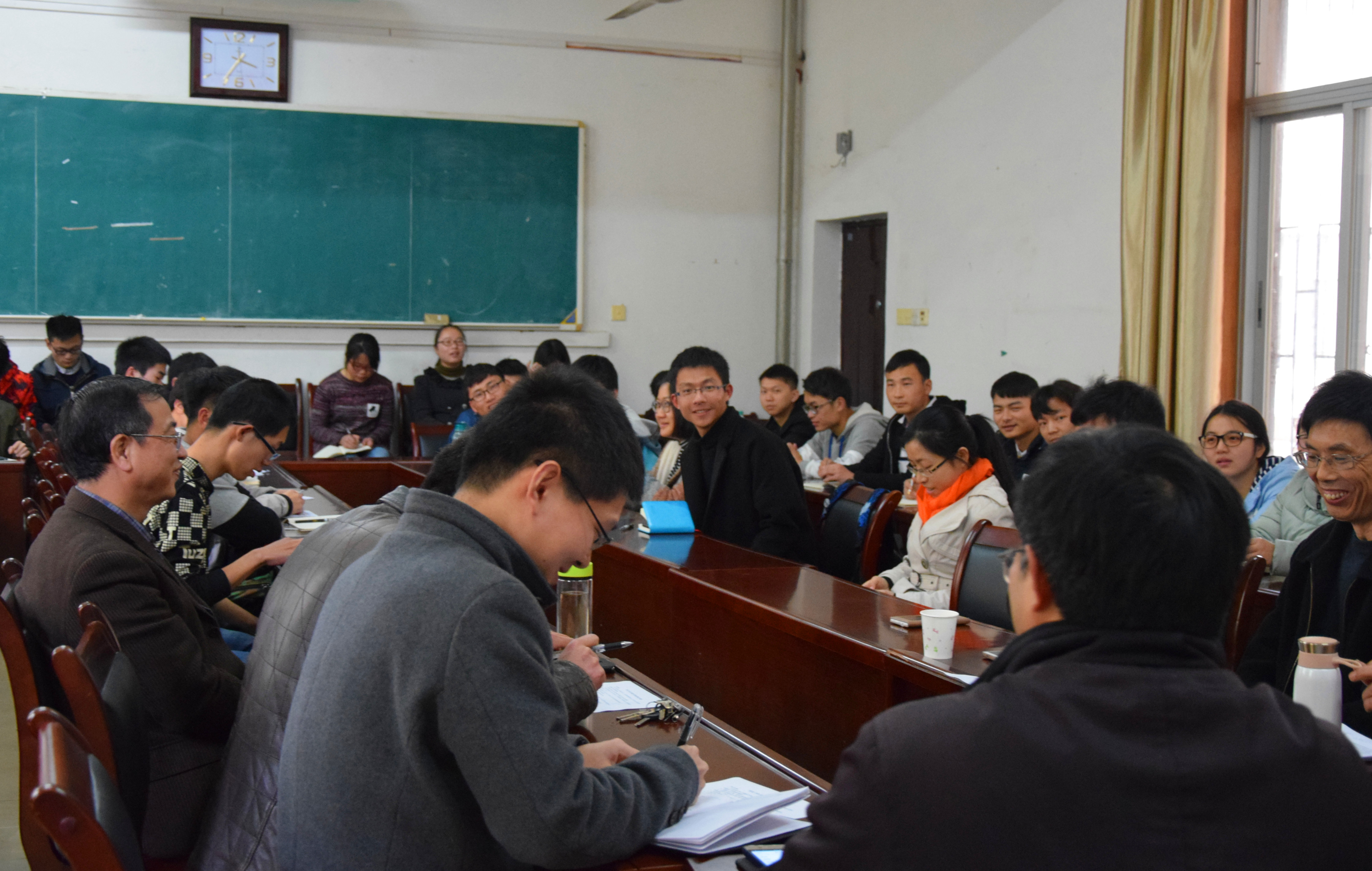恳谈会围绕“解难题,共发展”主题进行。应化1603班于2月28日,信计1601班、应化1601班和应化1602班于3月7日分别召开专题恳谈会。会上,同学们就考证、考研 、就业、专业学习、校园文化活动、 奖助学金评定、人际关系、后勤管理等方面问题与领导老师进行了深入而热烈交流。