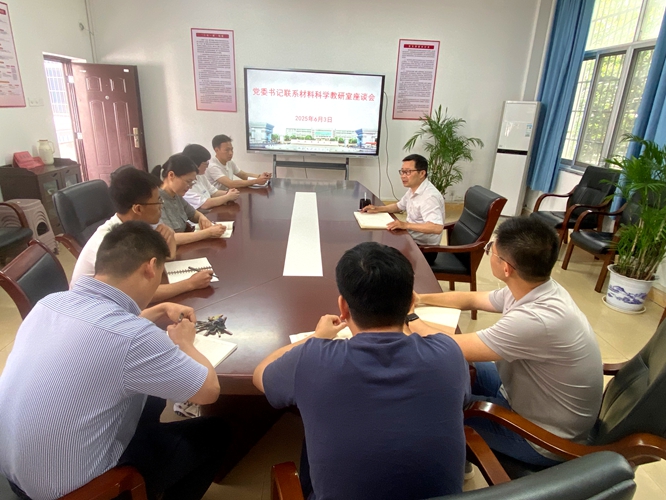 在座谈交流环节,刘书记认真听取每位教师的工作汇报,围绕材料科学教研室的专业建设方向、学科发展规划、教师职业成长路径,以及教学实践与科研创新中面临的具体问题,与教研室成员展开深入探讨。刘书记结合学科前沿趋势与学院整体布局,提出系统性指导建议,并明确了下一阶段的重点工作任务。