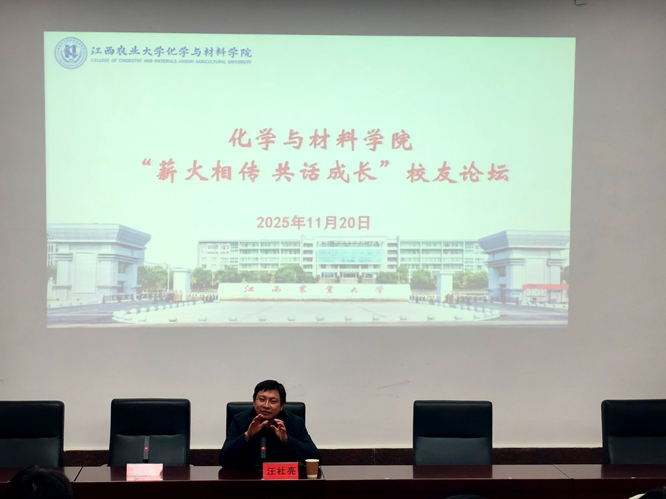 师生聚首,共话学院美好未来。下午14时30分,“聚力校友智慧,共创学院未来”创新发展大会在学院致理楼214会议室隆重举行。学院党政领导班子、教师代表与校友们齐聚一堂,围绕学院与校友个人发展深入交流。大会上,副院长龚霞致辞,对校友返校表达了热烈欢迎与诚挚感谢,希望广大校友关心、支持学院的发展。副院长卢丽敏从学科建设、师资力量、人才培养、科研成果等方面介绍了学院近年来的发展成就。党委书记刘庆言作总结讲话表示,校友是学院的重要财富,广大校友在各自岗位上取得了丰硕的成绩,也为学院赢得了良好声誉,希望广大校友继续传承弘扬“厚德博学、抱朴守真”的江农精神与理学院、化材院的院训,与学院、学校共创事业发展的新成就。学院也将持续搭建校友交流平台,携手校友共同助力学院事业发展和人才培养再上新台阶。校友代表们纷纷表示今后将更进一步加强与母校、母院的联系,继续关心和支持学院各项工作,为母校的高质量发展贡献自己的热情和力量。